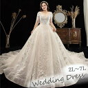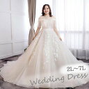 【ぽっちゃり向け発表会ドレス 大きいサイズ対応】S-8L ウェディングドレス 体型カバー 花嫁 結婚式 プリンセスライン 七分袖 袖あり 大きいサイズあり 体型カバー