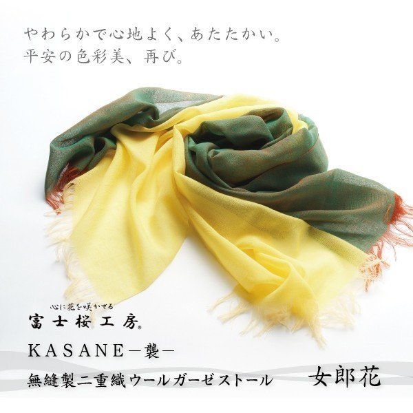 送料無料 \割引クーポン配布/ストール レディースマフラー 大判 KASANE 襲 女郎花 イエロー グリーン ...