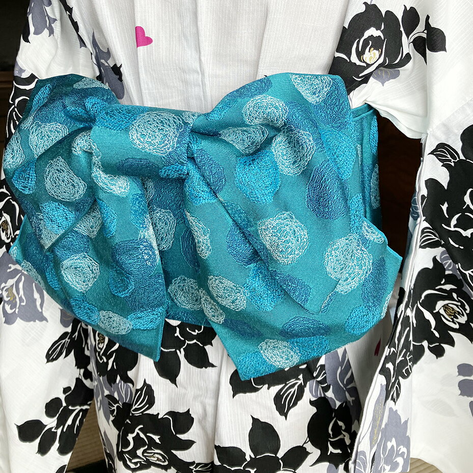 素材 ポリエステル 100% サ イ ズ 前帯全長約145cm、幅約16.5cm 結び帯部分(横×縦)約36×26cm (手結び風ですので形を変えることも出来ます) 若干の個体差はございます 備考 夏、お出掛けしたくなるよ...