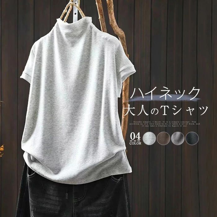 Tシャツ カットソー レディース tシャツ ハイネック 半袖 プルオーバー 夏 春 無地 タートルネック 定番 tシャツ ゆったり カジュアル 大きいサイズ おしゃれ シンプル ゆるっと
