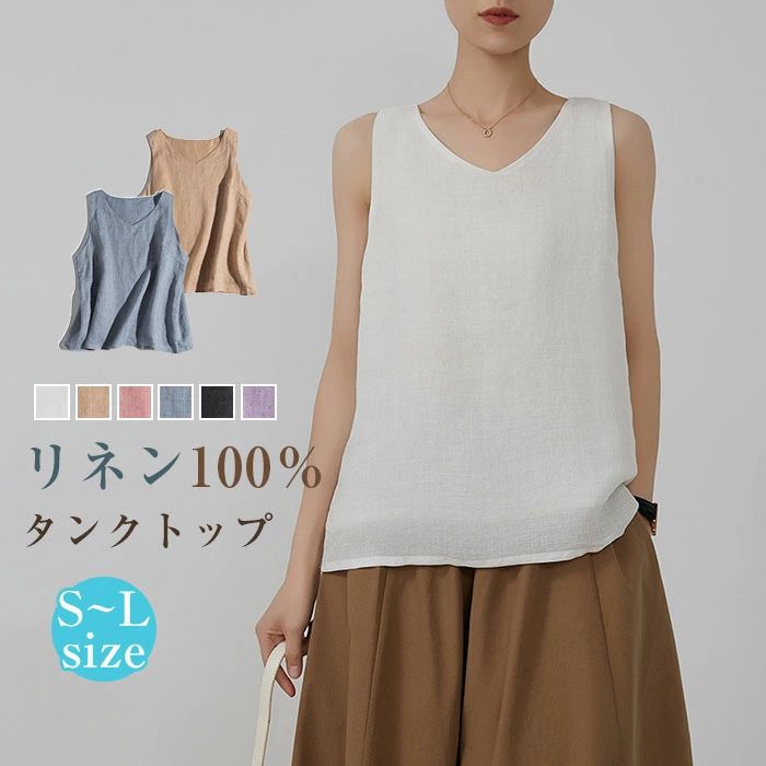 タンクトップ ブラウス ノースリーブ リネン レディース リネン ブラウス Vネック 麻 夏 秋 春 トップス 無袖 tシャツ ノースリーブ トップス 涼しい 真夏 ゆったり 体型カバー
