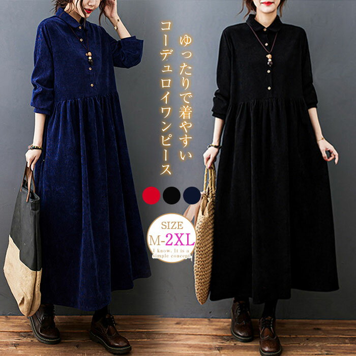【P2倍!3280円→実質3214円 12/11 01:59まで】コーデュロイ ワンピース ロングワンピース ゆるっとワン...