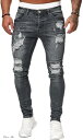 [Four leaf] やりらふぃー スキニー デニムパンツ ストレッチ ダメージ加工 スリムパンツ スキニーパンツ ジョガーパンツ メンズ 裾上げ済み パンツ