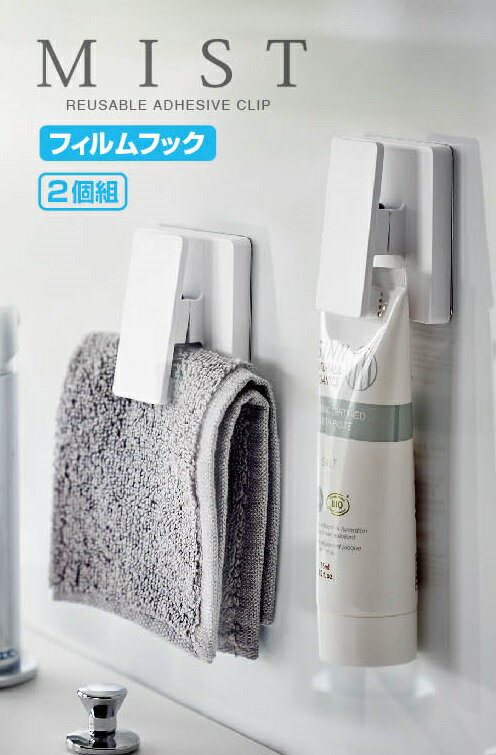フィルムフック ワイドクリップ 2個組 MIST ミスト( ホワイト / 5955 ) 山崎実業(YAMAZAKI) タイル...