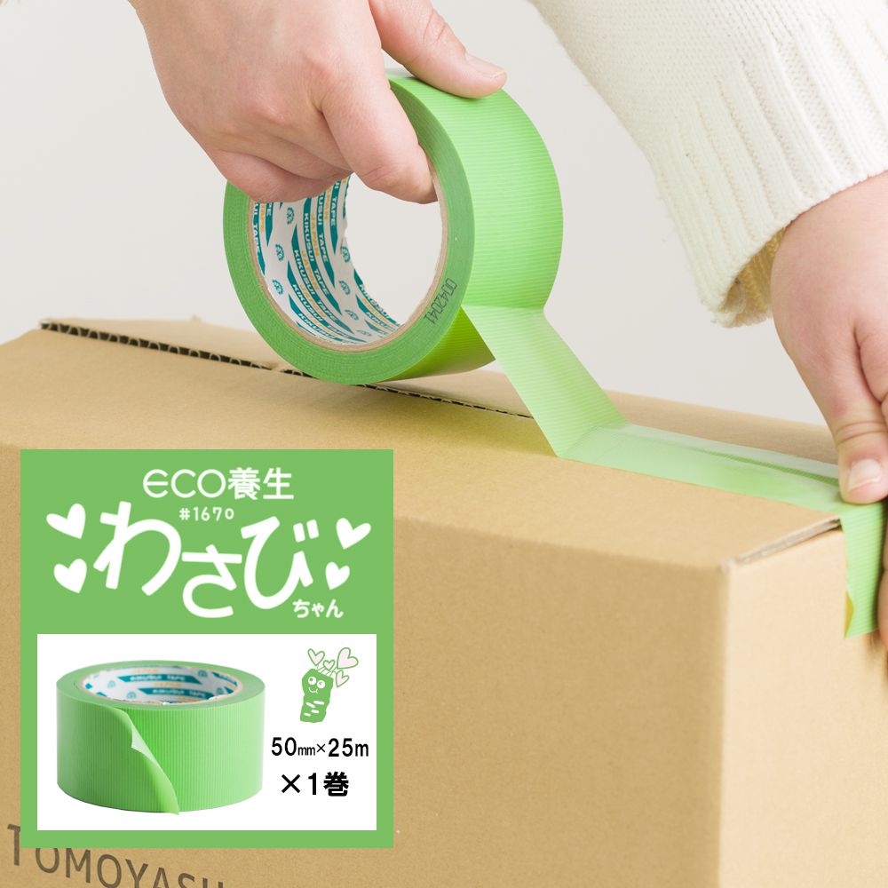 [最大10%OFFクーポンあり] 養生テープ 50mm×25m 1個[ECO養生テープ わさびちゃん グリーン 一般家庭 業...