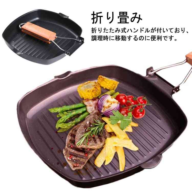 グリルパン スクエア 折り畳み 20cm 24cm IH対応 アウトドアステーキ皿 ステーキフライパン グリルパン ...