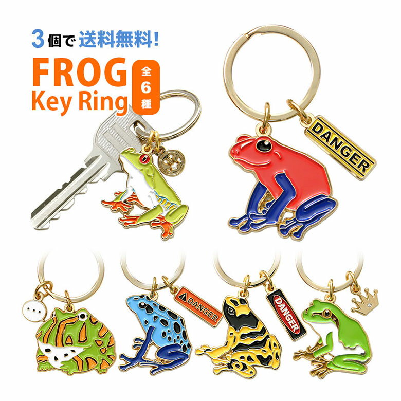 【3個買うと送料無料!】 全6種 カエル キーリング | 鍵 かわいい リング 便利 キーホルダー グッズ 両...