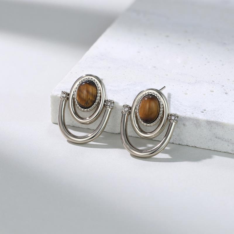 イヤリング レディース 虎眼石 U形 オリジナルデザイン 電気メッキ加工 コーヒー金 テクスチャード 淘宝 アマゾン アリエクスプレス Tmall 独立ステーション 抖音 ヴィンテージ 繊細 輝き ラッキーアイテム