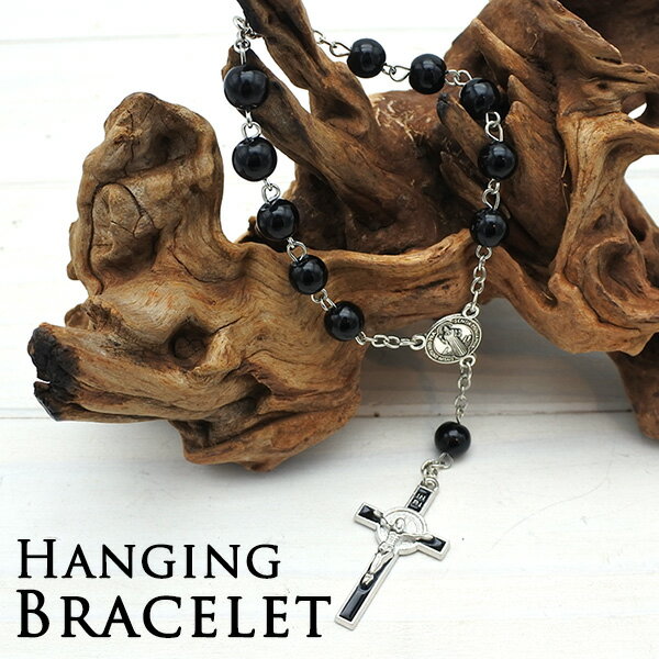 ジーザスクロス ルームミラー ハンギング ブレスレット ブラック クロス 十字架 キリスト ブレス おしゃ...