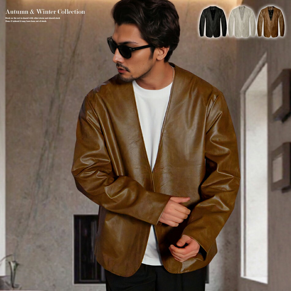 ノーカラージャケット メンズ レザージャケット テーラード ジャケット オーバーサイズ イケオジ 韓国 ...