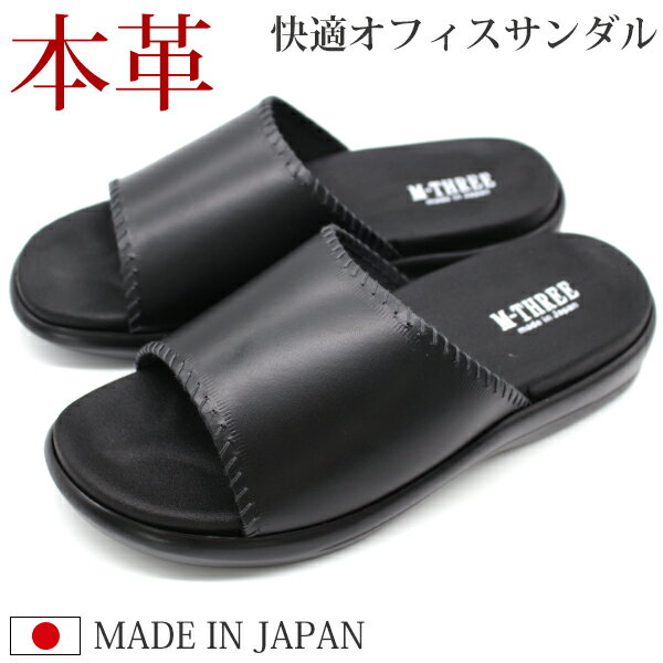 サンダル メンズ 靴 黒 ブラック オフィスサンダル 日本製 本革 仕事 会社 軽量 軽い エムスリー M.M.M ...