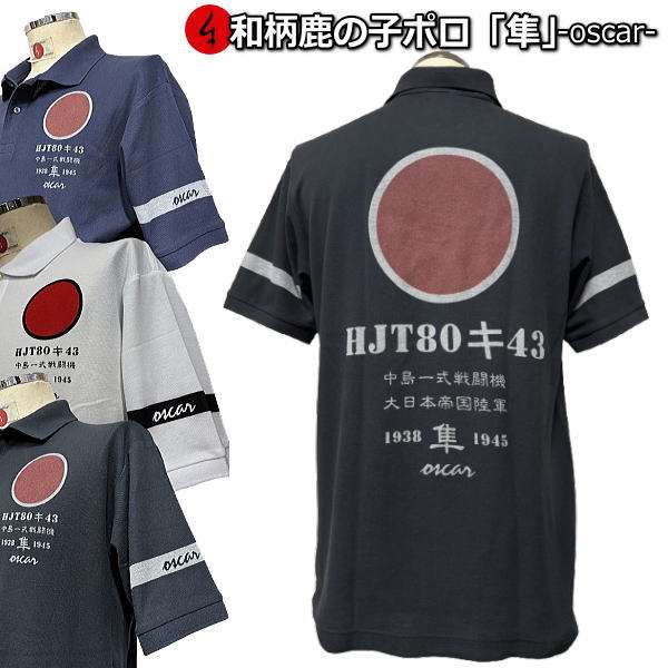 和柄鹿の子ポロシャツ「隼-oscar-」大きいサイズ 3L 4L 5L アメカジ 旭日旗 日ノ丸 特攻 半袖 tシャツ ...