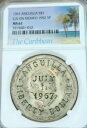 1967 ANGUILLA SILVER 1 DOLLAR COUNTER STRUCK ON MEXICO 1952 5 PESOS NGC MS 61