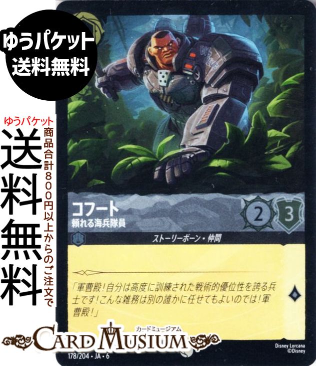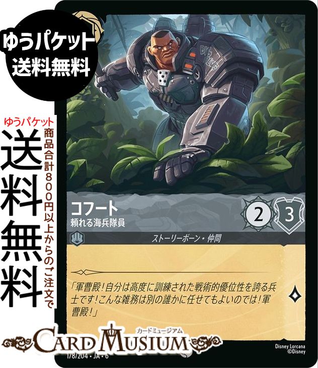 ディズニー ロルカナ「AZURITE SEA 大いなるアズライト」(DL-06)収録 ●カード名:コフート_頼れる海兵隊員 ●レアリティ:コモン ●タイプ:キャラクター ●インク:スティール ●インクウェル:インク可能 ●コスト...