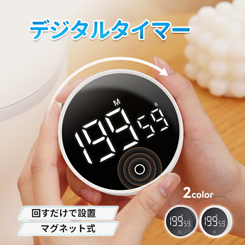 デジタルタイマー キッチンタイマー マグネット ダイヤル式 LED 電池式 大画面 カウントダウン カウント...