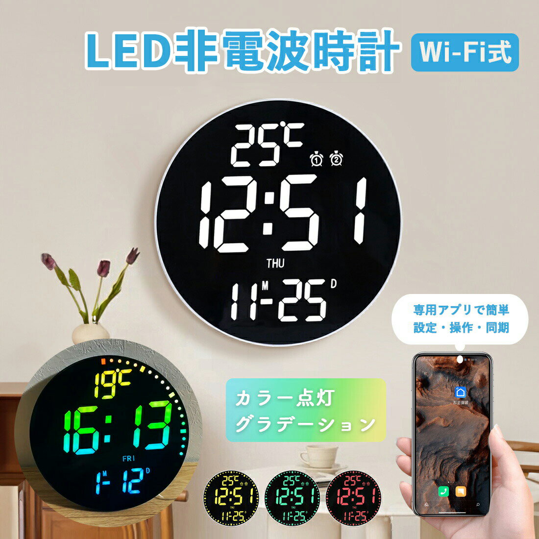 ラッピング可 LED デジタル 壁掛け時計 WiFi連携 アプリ連携 カレンダー 遠隔操作 スマホで操作 新生活 プレゼント ギフト 誕生日 贈り物