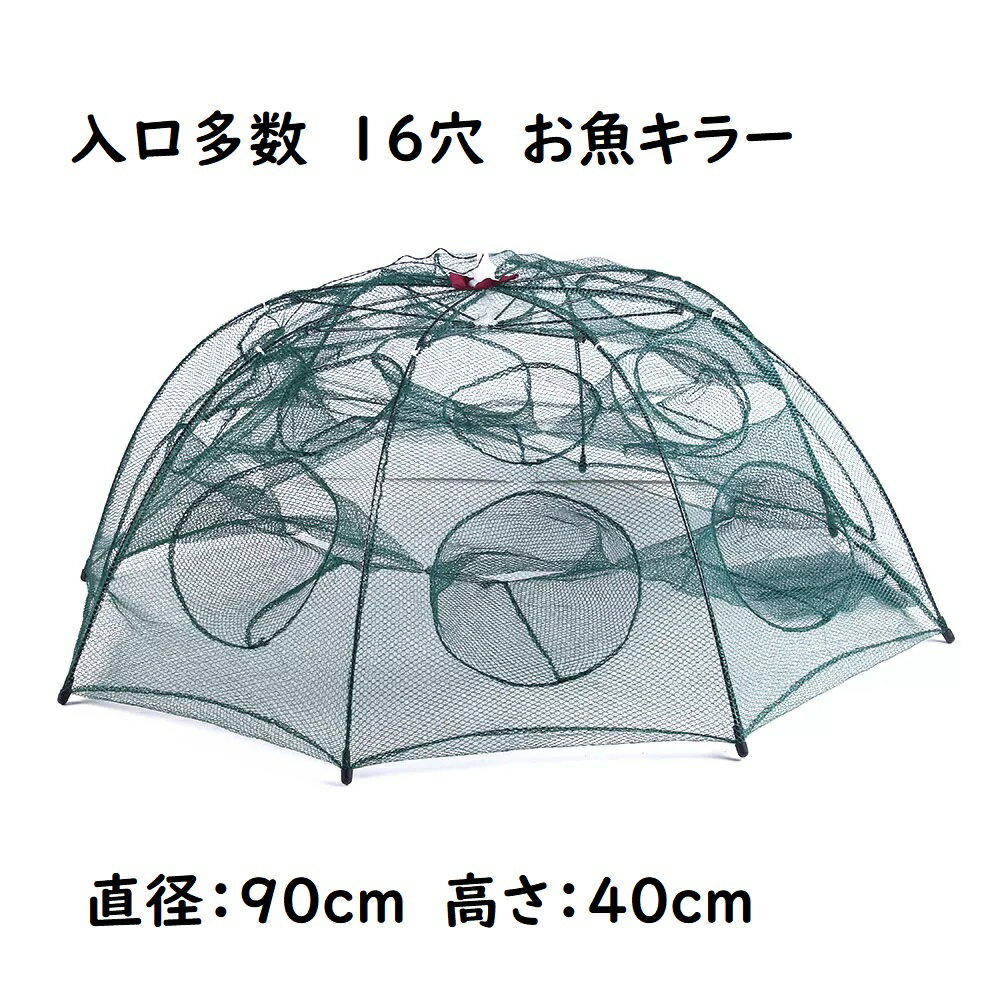 八角網 16穴タイプ 八つ手 コンパクトに持ち運べる 折り畳み式 エビ カニ 小魚 漁具 魚捕り 漁具...