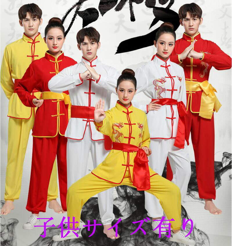 男性 女性 キッズ 男女兼用 ユニセックス 太極拳服 長袖上下2点セット カンフー 武術 表演 練習 衣装 中華風 獅子舞 鼓舞ダンス衣装 ステージ衣装 舞台衣裳 長袖と半袖有
