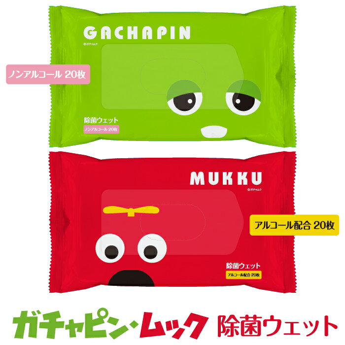 ガチャピン・ムック 除菌 ウェットティッシュ 大判 20枚 (アルコールタイプ・ノンアルコールタイプ 各1...