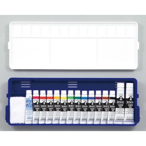 クリエイトセットにブライトマゼンタ色と筆・定規が入ったセット! ※混色カードのサービスはありません パレット×2、11ml絵具12色+20 ml ホワイト2本入×1、黒軸デザイン筆(ナイロン)4本[面相筆・彩色・平筆・...