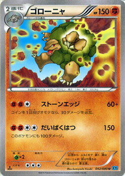 ★収録:ポケモンカードゲームXY 拡張パック「ワイルドブレイズ」 ■カード名:ゴローニャ ■HP:150/タイプ:闘 ■分類:2進化 (ゴローンから) ■ワザ ●闘闘無:ストーンエッジ/ダメージ:60 コインを1回投げオモ...