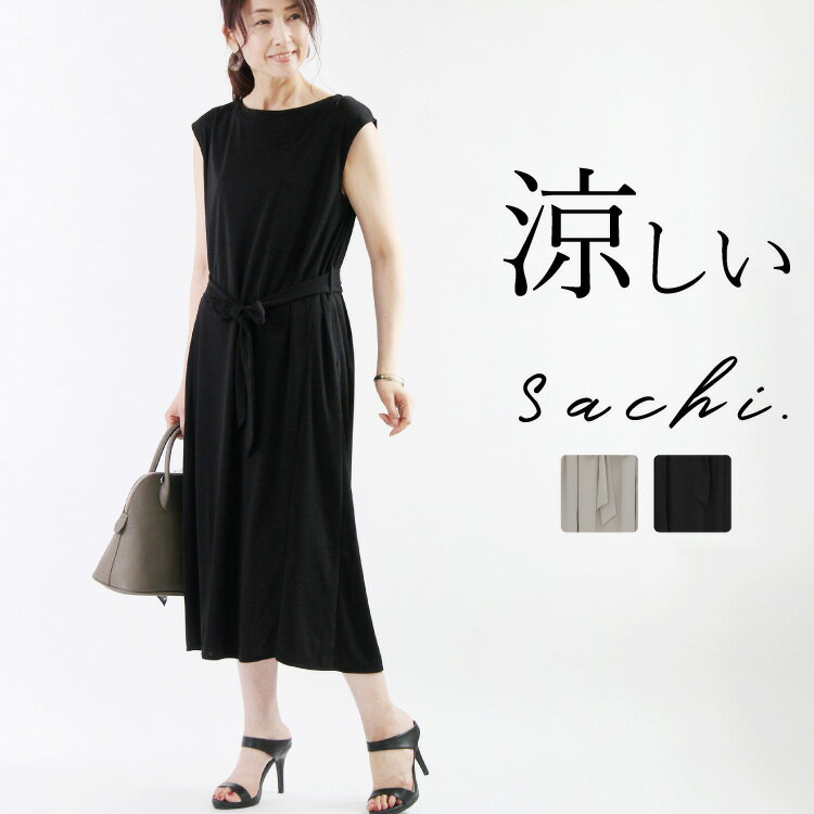 ワンピース ワンピ ロングワンピ 春夏 きれいめ レディース 半袖 ミモレ丈 無地 ウエストリボン 大人 デ...