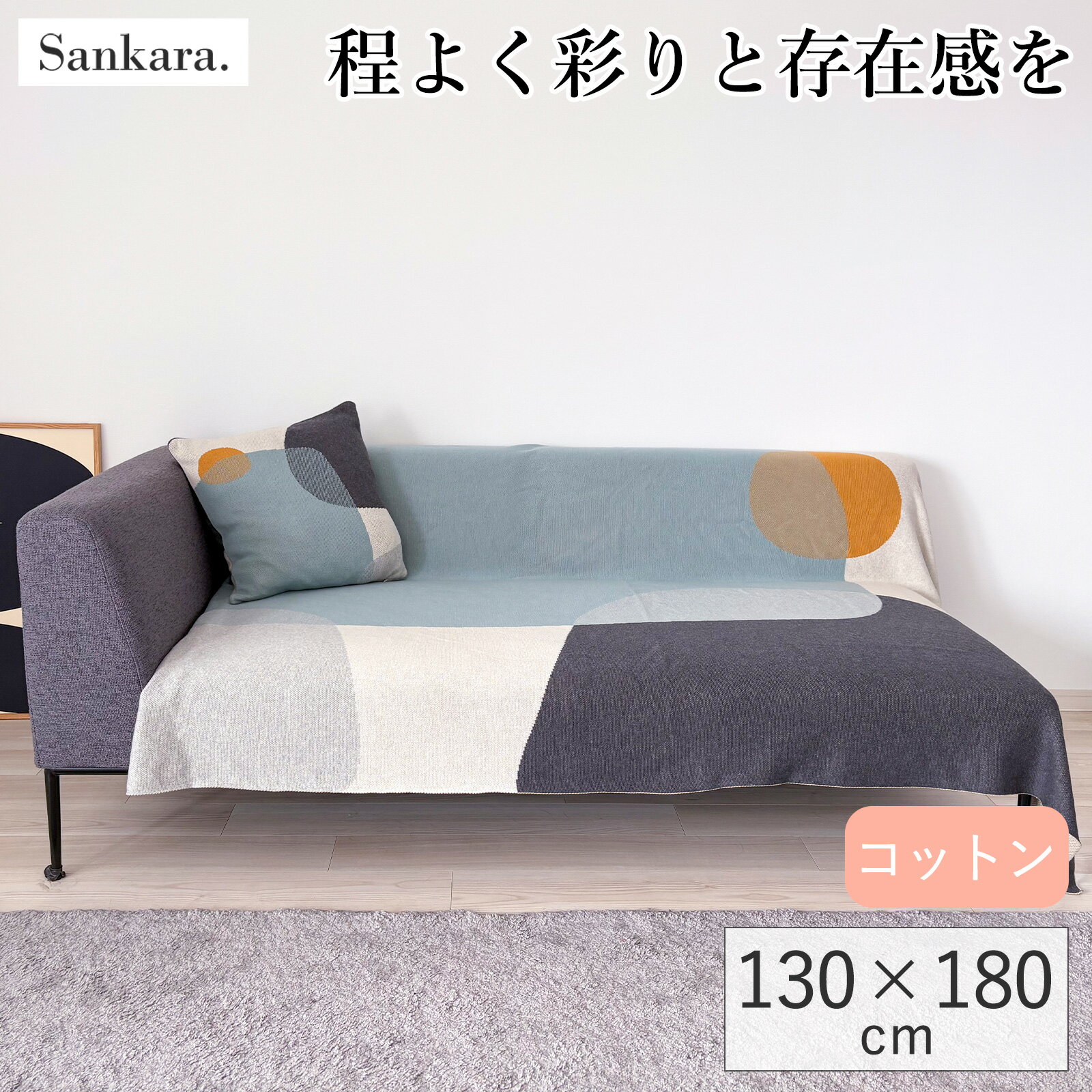 スローケット 130×180cm 大判 ブランケット GOTS ニット コットン100% ブルー イエロー Sankara. サンカラ