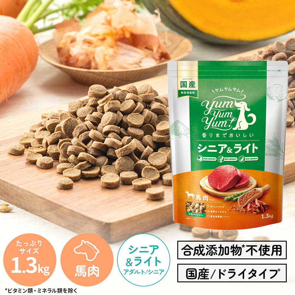 【ヤムヤムヤム】yum yum yum! シニア&ライト 馬肉 ドライタイプ 1.3kg【15時までの注文で当日発送 ...