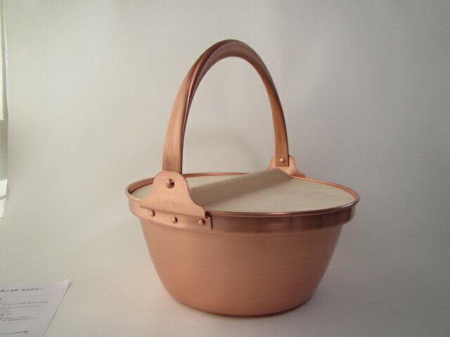 純銅製 山菜鍋 27cm 内側錫無し 純銅鍋 木蓋付 IH不可 ツル付鍋 銅 山賊鍋 段付き鍋 ツル付銅鍋 純銅 料...