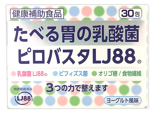 リニューアルに伴いパッケージ・内容等予告なく変更する場合がございます。予めご了承ください。 名 称 ピロバスタLJ88 ヨーグルト風味 内容量 36g(1包1200mg×30包) 特 徴 ◆たべる胃の乳酸菌 乳酸菌LJ88(R)、...