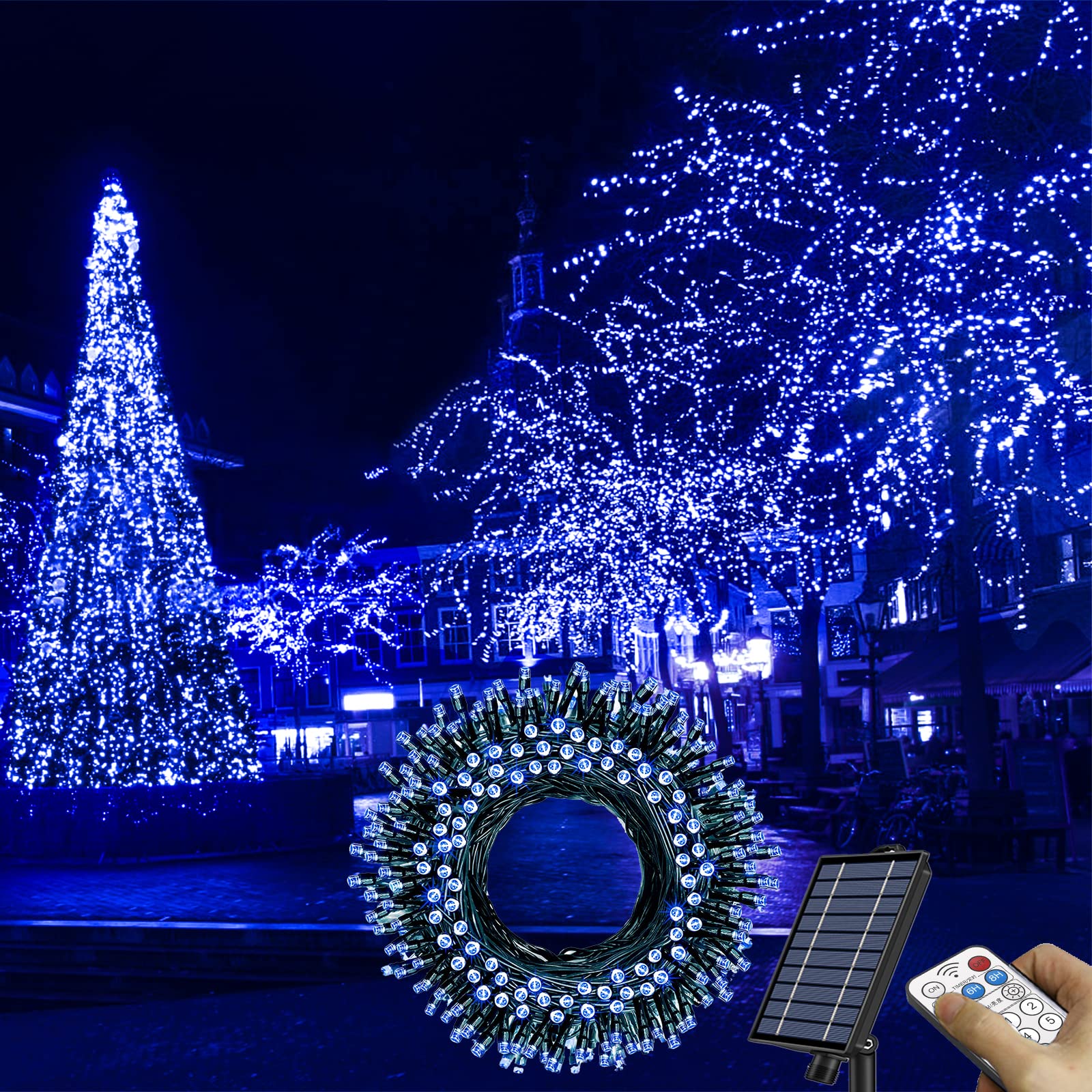 500球 50m ソーラー式 LEDイルミネーションライト ブルー TYPEC充電可 クリスマス ストレート 屋外 防水...