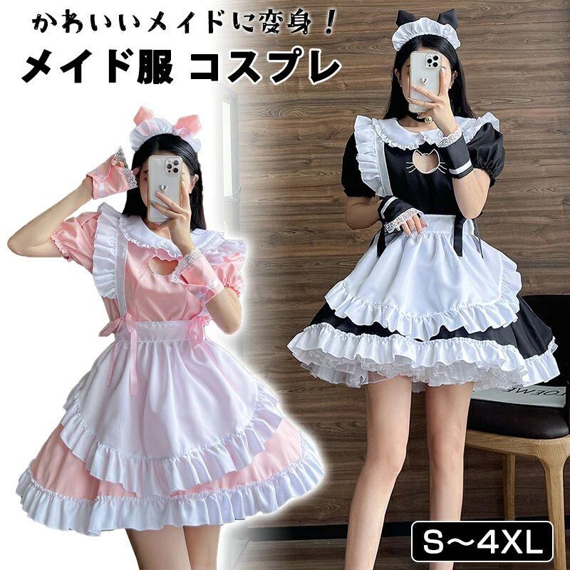 【商品仕様】 ■サイズ:S-4XL ■素材:綿、ポリエステル ■セット内容:ワンピース+エプロン+ヘッドウェア+チョーカー+アームバンド×2 ※モデルに小物を使う場合がございますが、記載のない商品は含まれませんの...