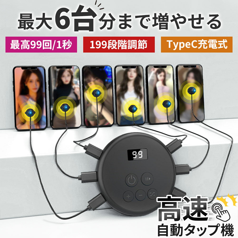 199段階速度調整 ゲーム周回 配信応援 超静音 静か 無音 画面を傷つけない 挟んで固定 放置でOK ポチポチ 簡単 便利 高速 スマホ スマフォ 充電 1秒間に最大99タップ USB充電 TyepC