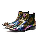 ショート ブーツ とんがり靴 ポインテッドトゥ ダンシング アイアン 尖った モザイク メンズ ブーツ バ...