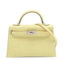 エルメス HERMES ミニケリー2 W刻印 SV金具オーストリッチ リモンチェッロ2WAYハンドバッグ(ライトイ...