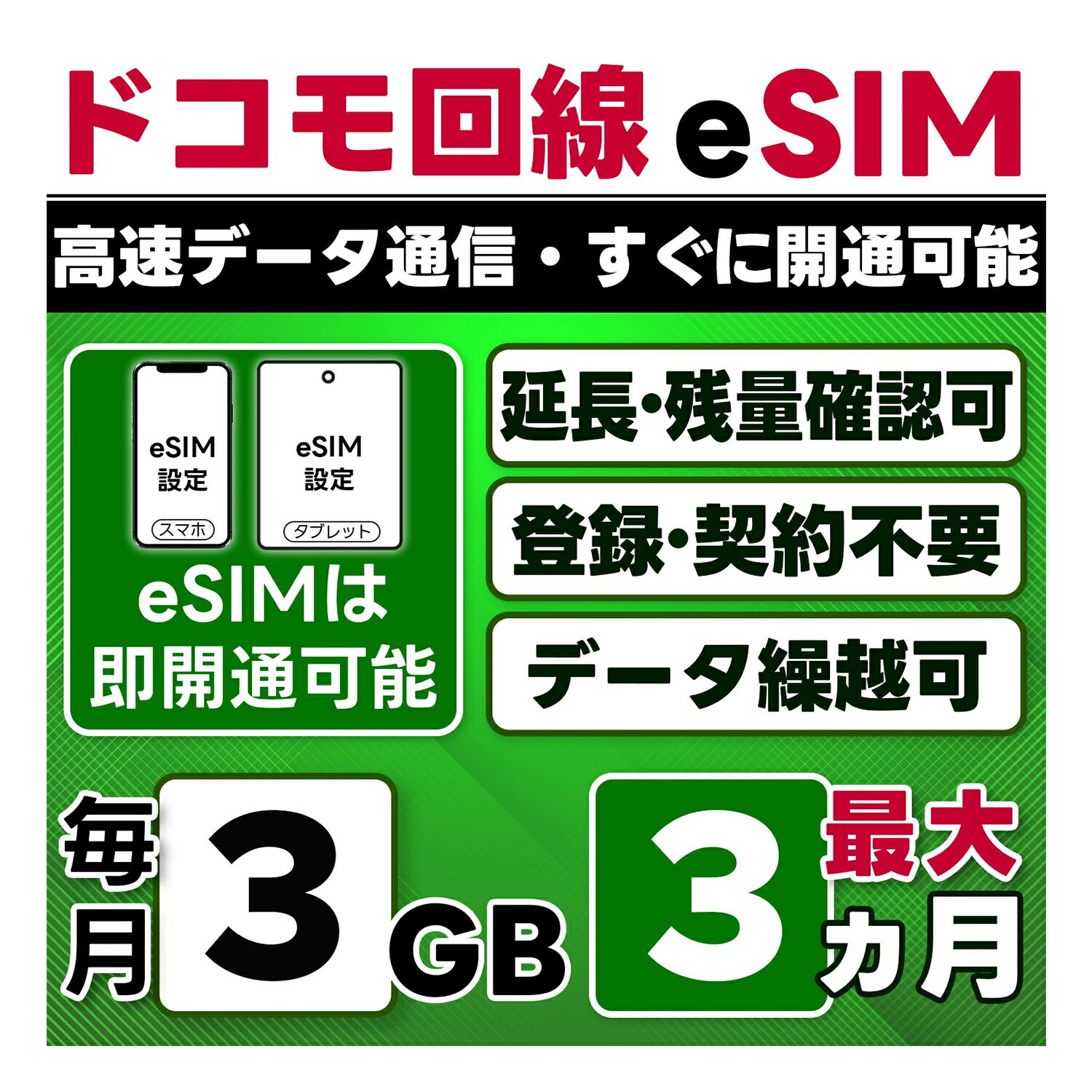 【eSIM版】プリペイド eSIM 日本 | 即日開通 | 3GB/月 | 最大3ヵ月(開通月+2カ月) | docomo 4G/LTE ド...