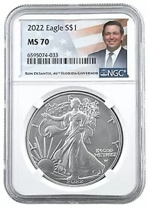 2022 1oz Silver American Eagle NGC MS70- White Core - Ron DeSantis Label