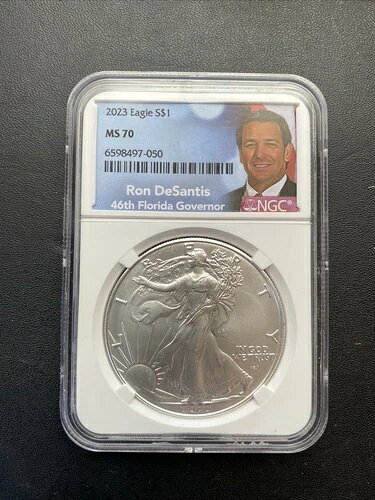 2023 RON DESANTIS NGC MS70 American Silver Eagle - $1 ASE Coin Gift - 1 oz .999