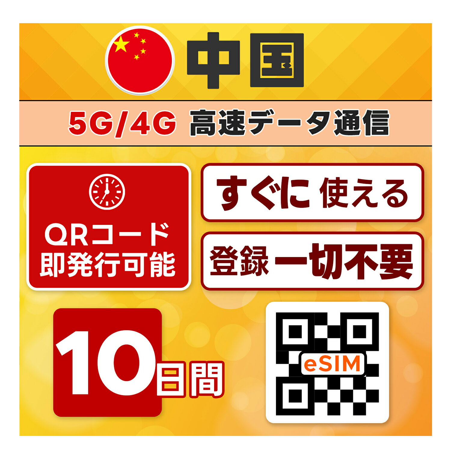 中国 eSIM | 最短30分 でQRコード自動発行( 24時間対応 ) | メール納品 即利用可 | 10GB 使い切り / 10...