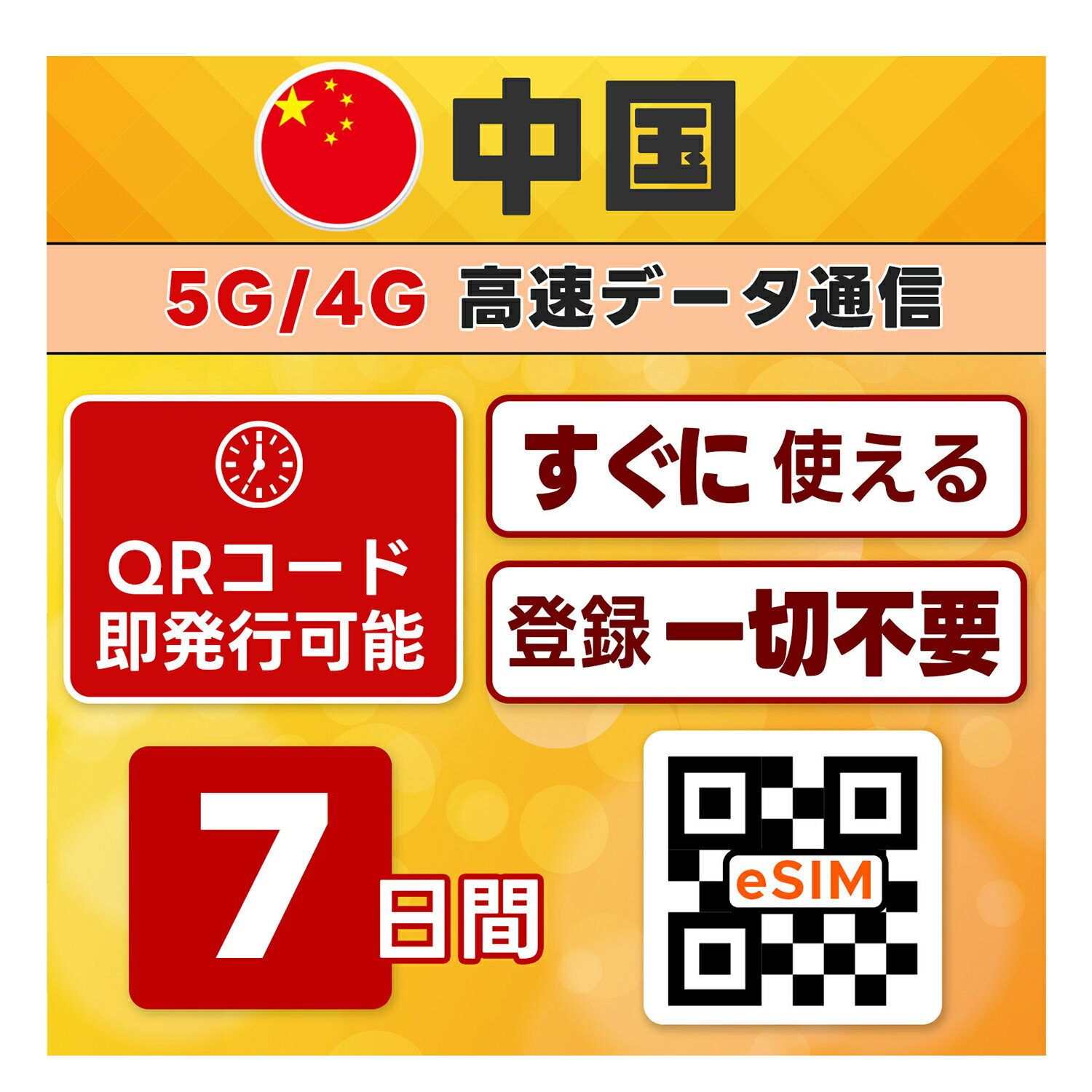 中国 eSIM | 最短30分 でQRコード自動発行( 24時間対応 ) | メール納品 即利用可 | 無制限 / 6日間 | 中...