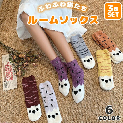 \半額市場★50%OFF/ 靴下 ソックス 猫 ねこ 全6色 ルームソックス レデぃー巣 雑貨 小物 靴下 靴下 ふ...
