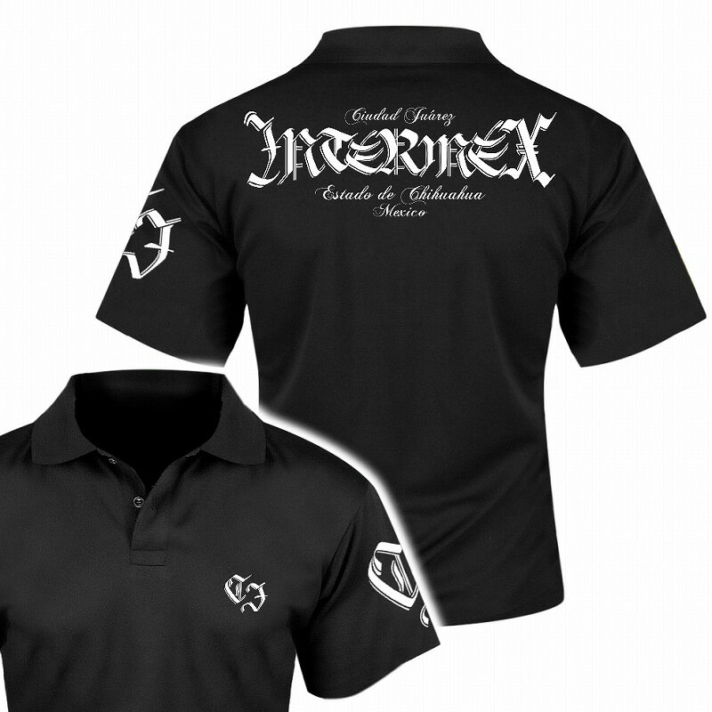 半袖 ポロシャツ 服 INTERMEX ロゴプリント itm-017黒 白 ギャング バイカー ライダース バイク乗り B系...