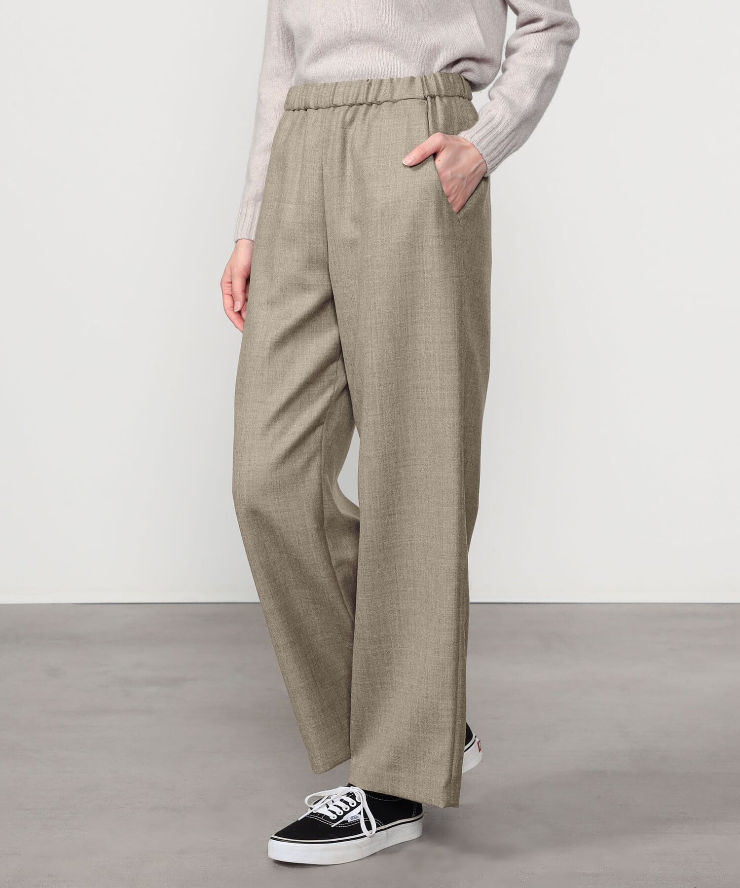 Bshop(ビショップ)MORRIS & SONS | ウールサキソニー ワイドイージーパンツ WOMEN<デザイン>-ワイドストレートのイージーパンツ-フォワードセットポケット/ヒップポケット-ゴムウエストにドローコードを通し...