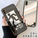 スマホケース ミラー 鏡面 ラウンド 非常口 ピクトさん ピクトグラム 出口 大人かわいい iphone13 iphon...
