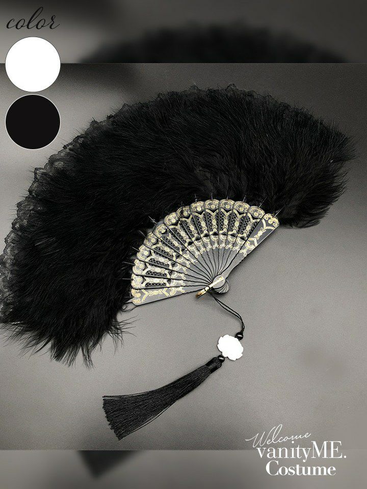 ファー付きレース扇子 ブラック・ホワイト vcsit-25070