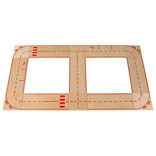 ベック社(ドイツ) 9.7×9.7cmの板6枚・9.7×24cmの板7枚。 直線、カーブ、交差点の印刷された板を組み合わせて道路を作ります。