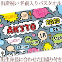 出産祝い 名入れ バスタオル 身長計 目印付き ポップデザイン 漫画の吹きだしコミックボイス 名前入り ...