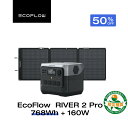 【クーポン利用で63,500円 10/1~】EcoFlow RIVER 2 Pro 768Wh + 160W ポータブル電源 ソーラーパネル セ...
