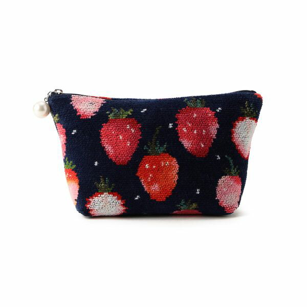 ストロベリードット コスメポーチ L/STD-223011 みずみずしいストロベリーを描いた「ストロベリードット」シリーズのコスメポーチ。小さなドット柄をちりばめて可愛らしくまとめ上げました。ファスナー部分に...