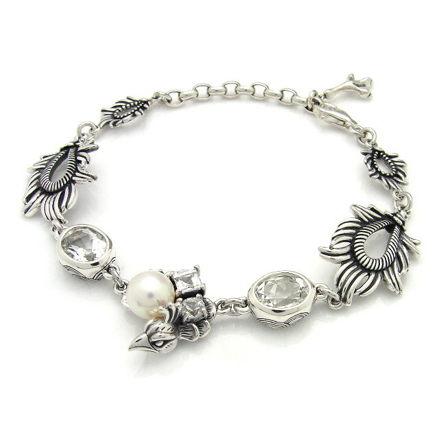 BRANDブラッディマリーITEM INFORMATION素材Silver925、ホワイトトパーズ、淡水パールサイズ(約)全長:18cm説明文幻想的で、『Primitive』(原始的)な雰囲気を持ったアイテムです。エンドパーツには孔雀の足のチ...